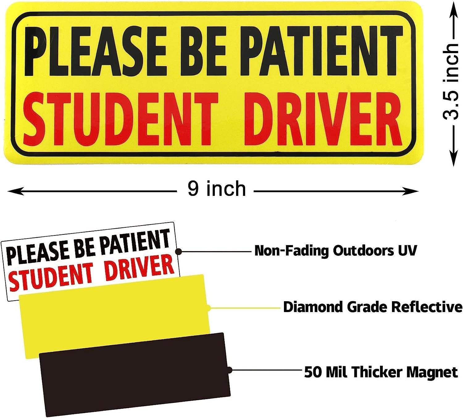 - STRESS REDUCTION: There comes with 3 pack student driver sticker, perfect for each side and the rear. These magnets hint other motorists to stay away from you, thereby saving tailgating and bothersome honking. You will have a better situation to focus on learning how to drive, without having to risk irritating other drivers.