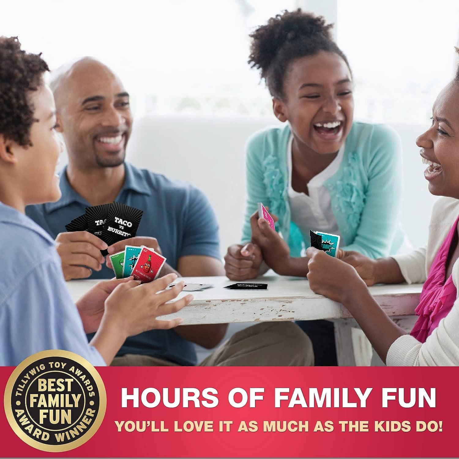 - Create by a Kid, Perfect for Everyone – Alex dreamed up TvB at age 7, but this crazy, fun strategic food fight is a smash with kids and adults alike! Ideal for ages 6 to 106.